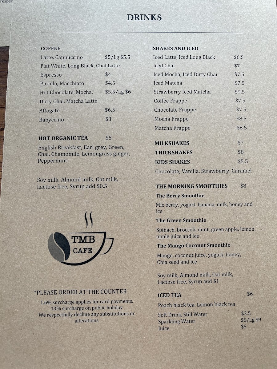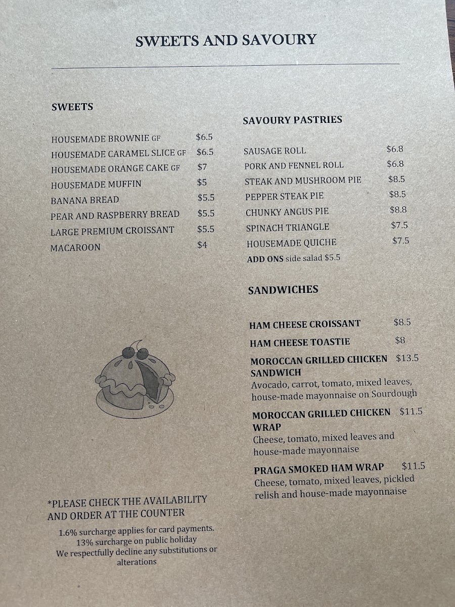 From a reviewer’s perspective, The Morning Blend Cafe at 91a Crown St, Wollongong offers a menu that is as inviting as its name suggests. For those with a sweet tooth, the Housemade Brownie, Housemade Caramel Slice, Housemade Orange Cake, Housemade Muffin, and Banana Bread provide comforting, freshly baked treats. The savoury selection is equally appealing, featuring classics like the Sausage Roll, Pork and Fennel Roll, Steak and Mushroom Pie, Pepper Steak Pie, and Chunky Angus Pie, perfect for a hearty bite. Sandwich and wrap options such as the Ham Cheese Croissant, Ham Cheese Toastie, and Praga Smoked Ham Wrap add a light, satisfying alternative. The beverage lineup is robust, from expertly crafted coffees-Latte, Cappuccino, Flat White, Espresso, Hot Chocolate, and Affogato-to refreshing shakes and iced drinks like the Iced Latte, Iced Long Black, Iced Chai, Iced Mocha, Iced Dirty Chai, Iced Matcha, and Strawberry Iced Matcha. Smoothie lovers will appreciate The Berry Smoothie, The Green Smoothie, and The Mango Coconut Smoothie, each promising a vibrant burst of flavor. The kids’ menu is thoughtfully simple, featuring Scrambled Eggs on Sourdough and a Cheese Wrap, while the all-day menu offers staples like Toast, Free Range Eggs Your Way, Bacon & Egg Roll, Brekky Wrap, Avo on Toast, and the creative Avo Fetta Dukkha. Overall, the menu strikes a balance between indulgent sweets, hearty savouries, wholesome breakfasts, and refreshing beverages, making it a versatile choice for both casual visits and more leisurely brunches.